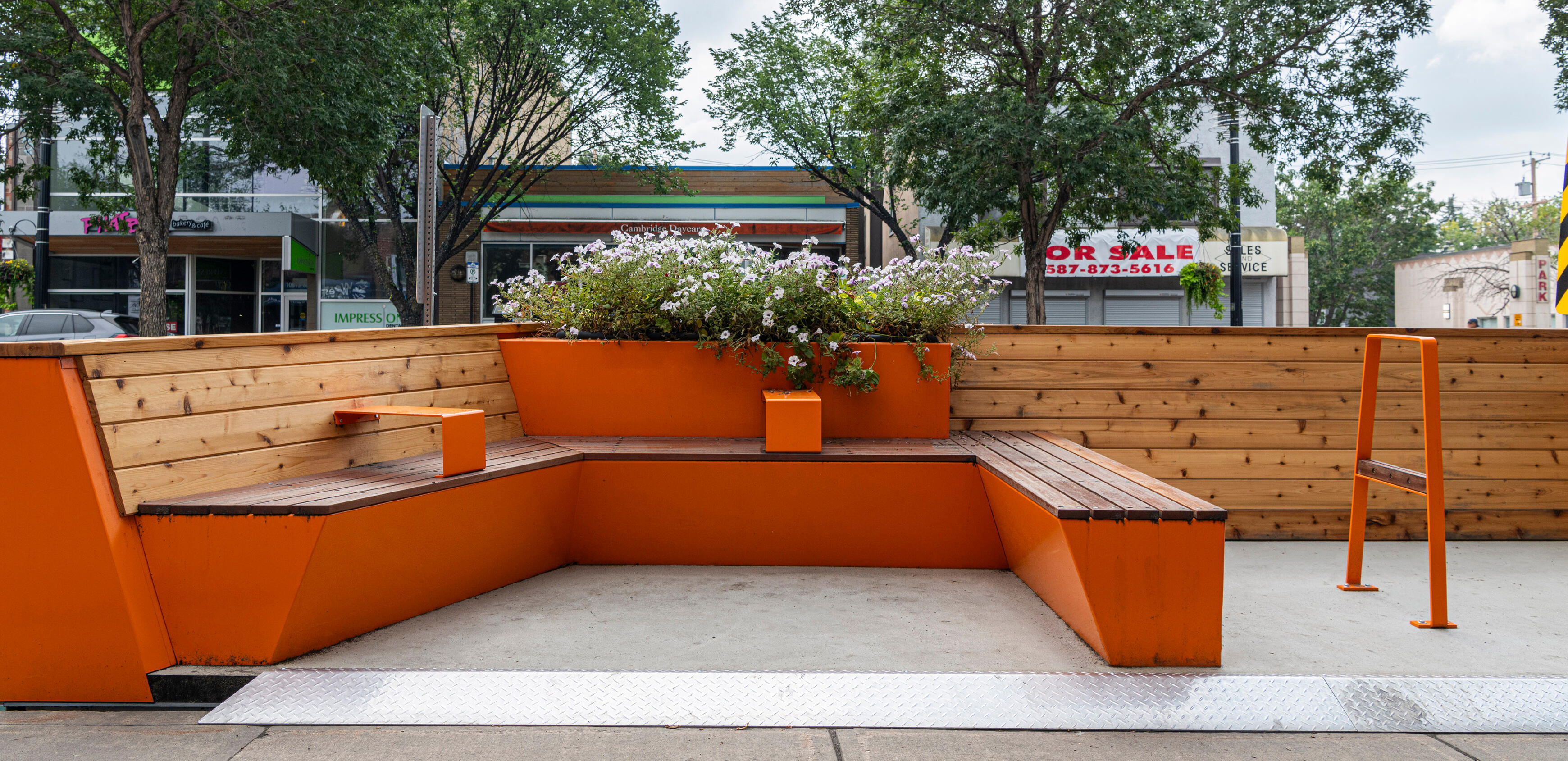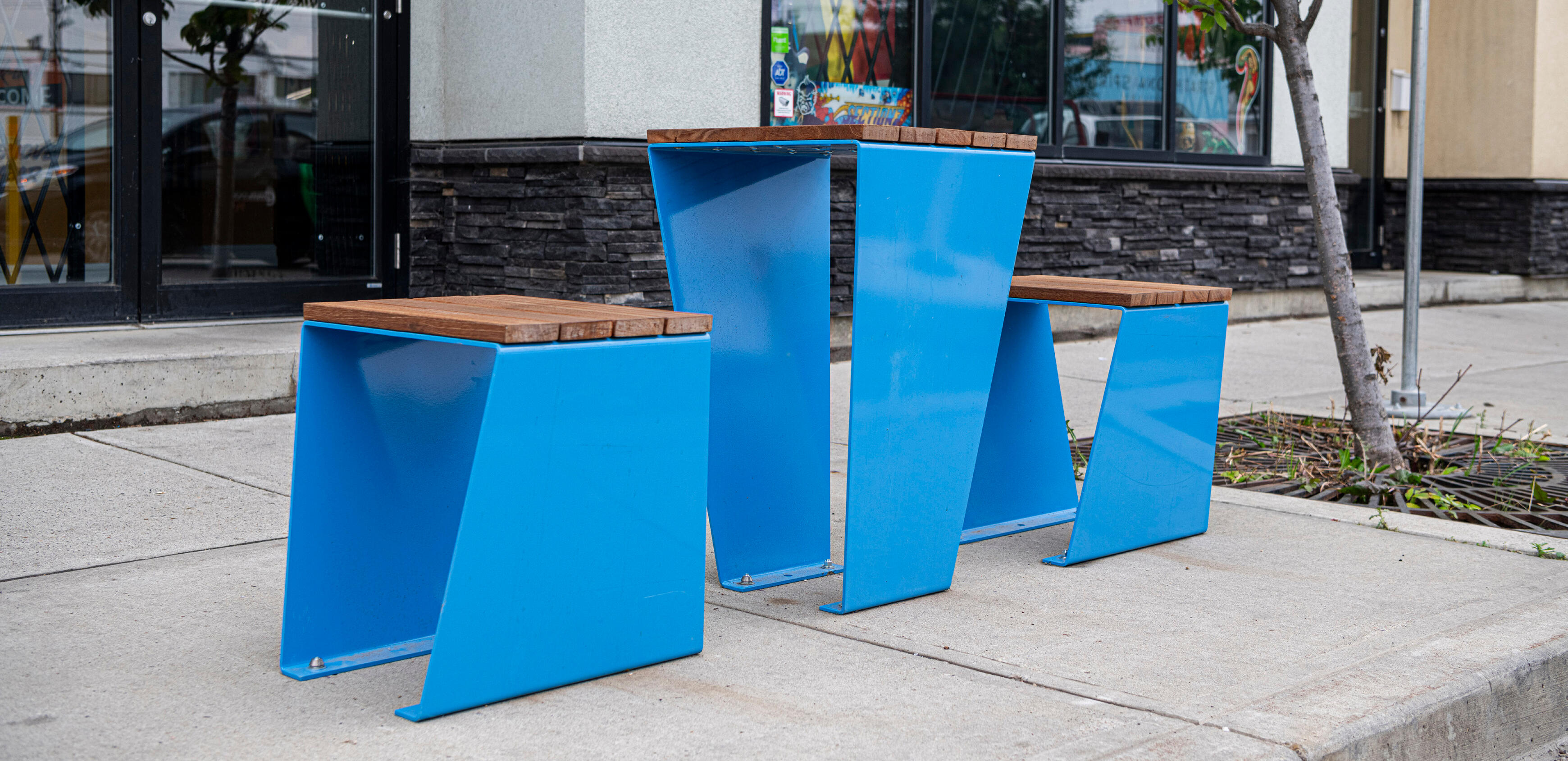 A custom site furniture collection that enhances public infrastructure while reflecting the unique character of Old Strathcona. Through public engagement and expert consultation, we determined the communities priorities and desires to create a design to capture the spirit of the neighbourhood while ensuring functionality and ergonomics. The site furniture collection has been the progression of previous street-expansion projects with the Old Strathcona Business Association, District Whyte, where we have collaborated in creating temporary site furnishings for the summer season.
