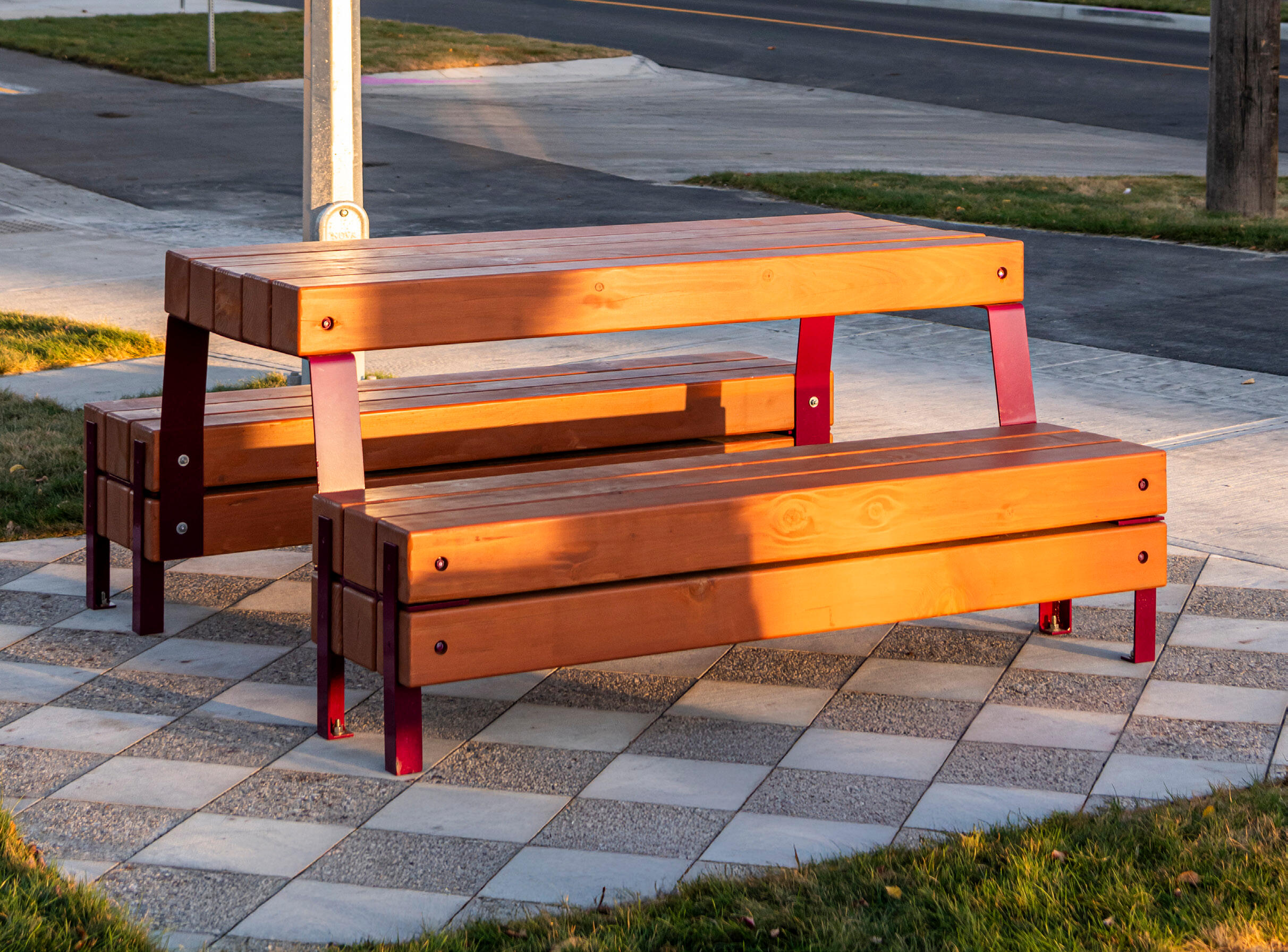 The Mackenzie Collection is inspired by the rugged beauty of Rocky Mountain forests, where towering Douglas firs and untamed wilderness embody strength and timelessness. The design features vibrant pops of color and the warm richness of wood, providing a bold yet welcoming contrast to the harsh Canadian winters. With a modular structure, the benches can be easily reconfigured to fit different landscapes and spaces, offering both flexibility and function. Made from sustainably sourced materials, this furniture line combines environmental mindfulness with contemporary, versatile design, making it an ideal addition to any outdoor setting.